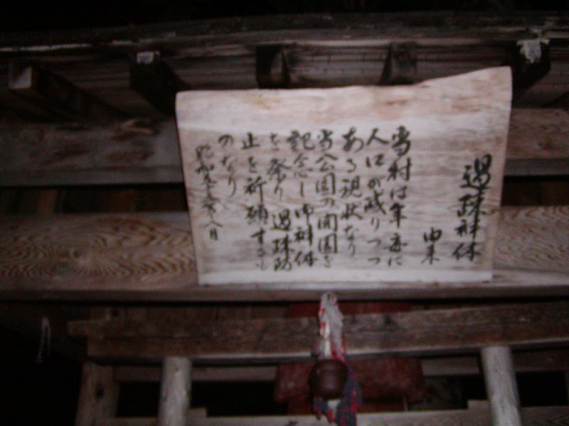 ・説明:当村は年毎に人口が減りつつある現状なり、当公園の開園を記念し御神体を祭り、過疎防止を祈願するものなり